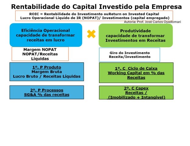 O ROI é resultado da Margem NOPAT multiplicado pelo Giro do Investimento.