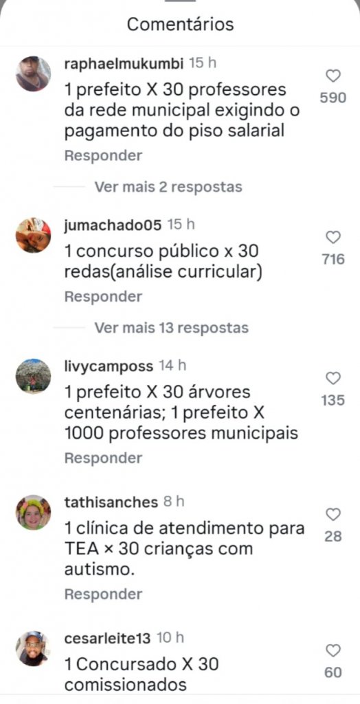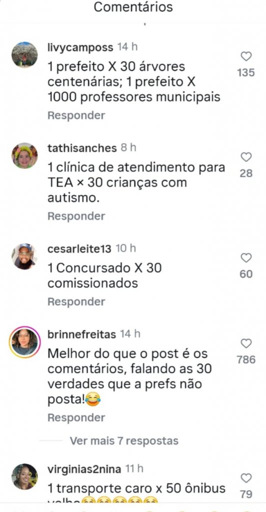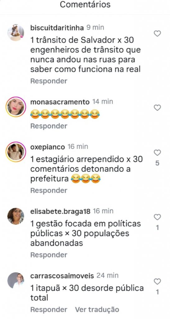 Na postagem, são colocados flyers que comparam as "coisas da Bahia" com outros estados ou situações tipo: "1 Carnaval de Salvador X 30 carnavais em linha reta" ou " 1 moqueca baiana X 30 moquecas capixabas"e tudo seria muito engraçado se os seguidores da Prefeitura não tivessem resolvido não achar graça nenhuma e colocado comparações tipo " 1 prefeito X 30 professores em greve, ou "1 lugar verde X 30 projetos de desmatamento" se referindo a fama de Bruno Reis de ser o "Majestade do cimento". As queixas vão de 1 transporte caro X 30 ônibus velhos, passam por "1 clinica TEA X 30 crianças com autismo" e vão até " 1 médico X 100 pessoas na UPA!