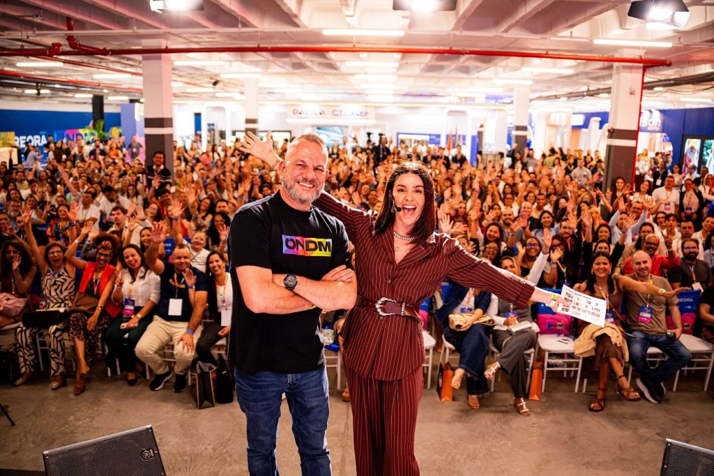 Além da feira de negócios, ofereceu conteúdo de alto nível com palestras e painéis sobre vendas online, marketing, tecnologia e gestão de negócios. Na foto, o idealizador e gestor do ONDM, o empresário Ivan Jasper, de Brusque (SC), com a também catarinense Joy Alano, estilista e influenciadora, idealizadora do "Provador Fashion", que estava entre as palestrantes da edição em Caruaru.
