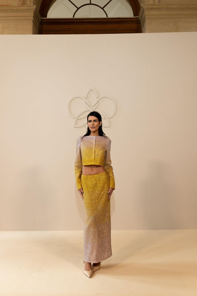 Logo em seguida, a artista acompanhou de perto a apresentação da coleção de Georges Hobeika com um conjunto luminoso assinado pela marca em sua mais recente coleção de primavera-verão. Com aplicação cuidadosa de pedrarias por todo o design, a brasileira foi um dos grandes nomes da noite.