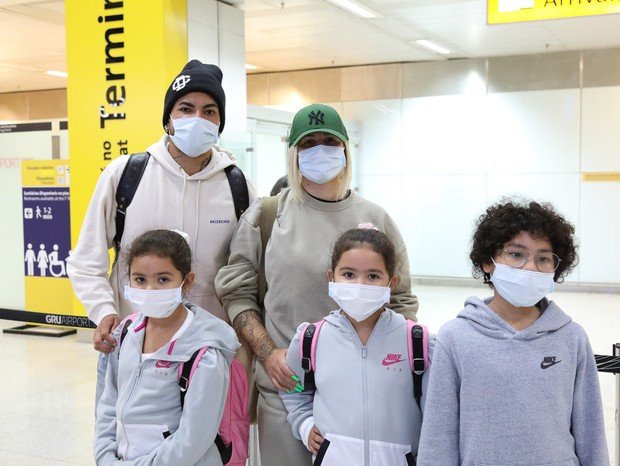 Como diz o velho ditado, o bom filho a casa torna. Na noite desta segunda-feira (10), Dani Souza e Dentinho, que estavam em temporada na Ucrânia, desembarcaram com os filhos, Bruno Lucas, de 8 anos, e as gêmeas, Rafaella e Sophia, 7, e mais 17 malas no aeroporto internacional de Guarulhos, em São Paulo.