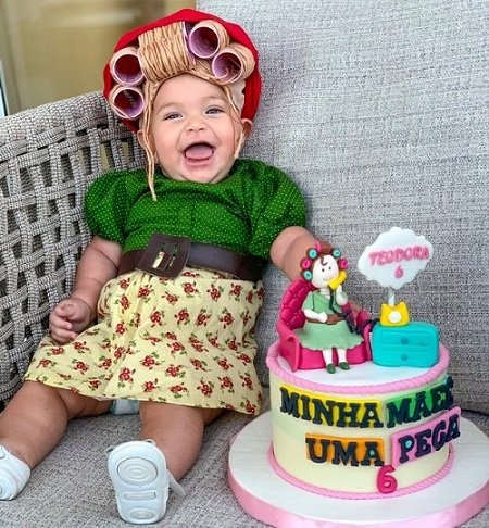A linda Teodora de 6 meses, está bombando na web. O motivo do sucesso? Uma foto de “mêsversário” inspirada na Dona Hermínia, personagem do filme Minha Mãe é uma Peça — uma homenagem ao saudoso ator Paulo Gustavo, que faleceu aos 42 anos por complicações da Covid-19 no dia 4 deste mês. “Toda mãe tem um pouco de Dona Hermínia”, escreveu a goiana Laís Cambotta, mãe de Teodora, na publicação. Quando completou seis meses, a pequena ganhou um bolo temático, um look colorido e até os famosos bobes da personagem, para comemorar.