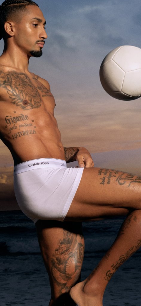 Fotografada com foco no movimento e força, o criativo dá vida para as habilidades de elite do jogador junto com as novas cuecas da Calvin Klein. Modelagens aprimoradas e tecidos avançados foram desenvolvidos para mover com o corpo, entregando conforto e controle. Visuais dinâmicos exploram diversas dimensões de performance, abraçando o tema dessa temporada que é viver o momento. O vídeo que acompanha a campanha, feito em ritmo acelerado, captura a energia atlética natural do Raphinha por meio da linguagem visual própria da marca.