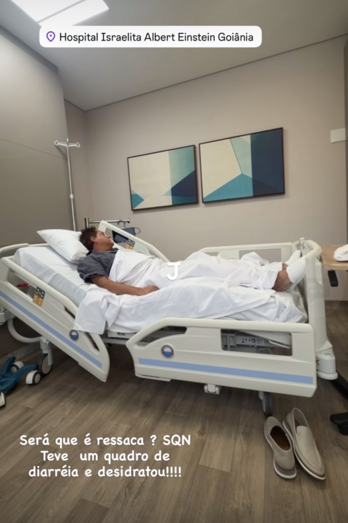 Através dos stories, Poliana atualizou o quadro de saúde do marido. “Será que foi ressaca”, perguntou brincando. Resumo da história: O artista está com diarreia e apresentou quadro de desidratação. Leonardo segue em observação no Hospital Israelista Albert Einstein de Goiânia.