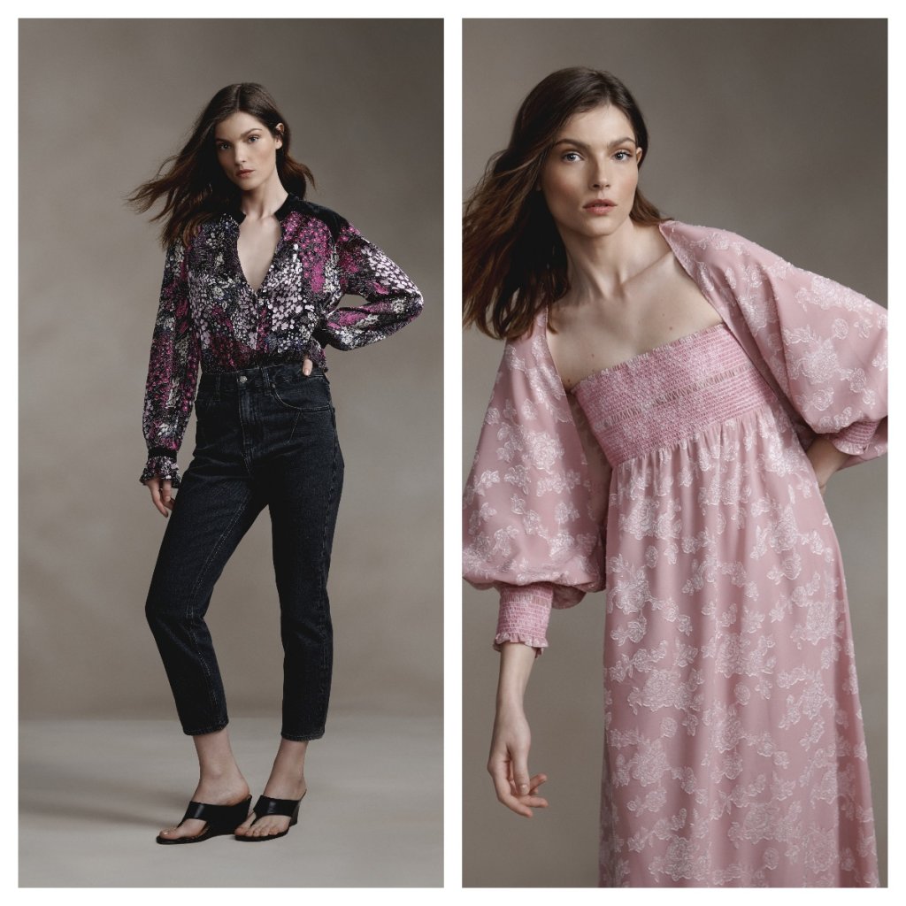 As modelagens priorizam fluidez e movimento, com vestidos e conjuntos de caimento leve, enquanto a alfaiataria surge em uma abordagem mais descontraída. Materiais como chiffon, devorê, tweed e seda reforçam o contraste entre delicadeza e presença, ao lado de trabalhos manuais que evidenciam o cuidado nos detalhes, como rendas aplicadas e bordados feitos à mão.
