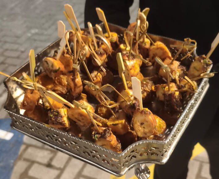 Entre releituras autorais, destacou-se o canudinho de camarão, servido em versão sofisticada com gergelim. Clássicos como kibe com molho pesto e camarão na tapioca também marcaram presença, encerrando com uma elegante finalização de chocolate quente.