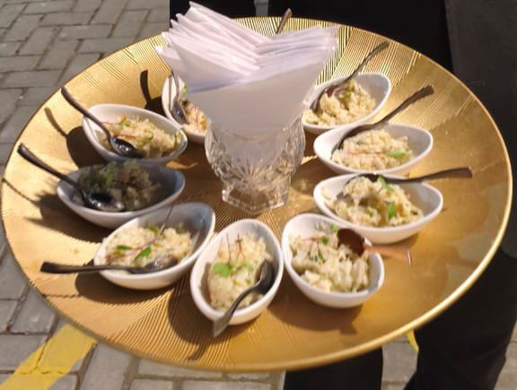 Com um cardápio contemporâneo e afetivo, Gleiciane apresentou degustações sofisticadas como arroz de bacalhau, filé mignon ao vinho, stack de polvo com batata confit e mini bocaditos de parma com geléia de frutas amarelas.