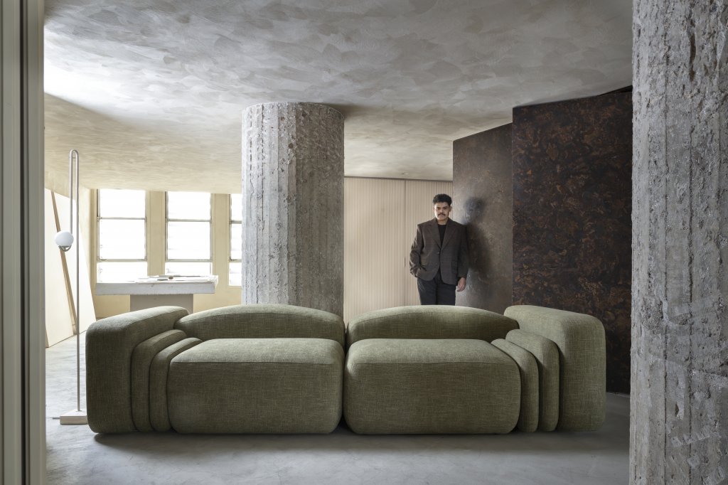 Foi nesse cenário que Everton cresceu, embalado pela música como ritmo de vida e celebração. O Sofá Acordeon é uma homenagem à fluidez e à flexibilidade do instrumento. Modular e versátil, apresenta base baixa e assento profundo. Quatro módulos independentes podem ser livremente reorganizados.