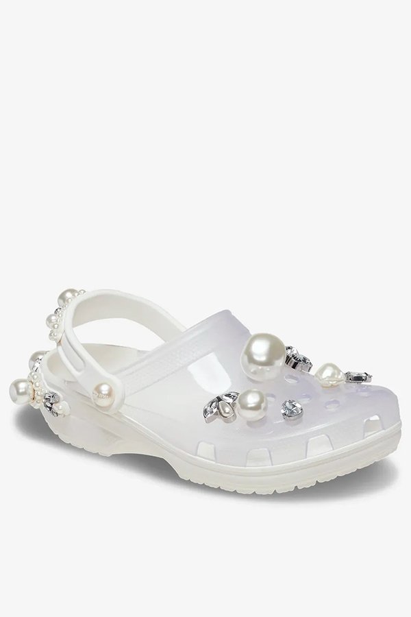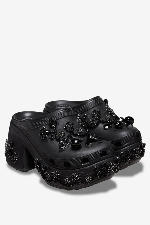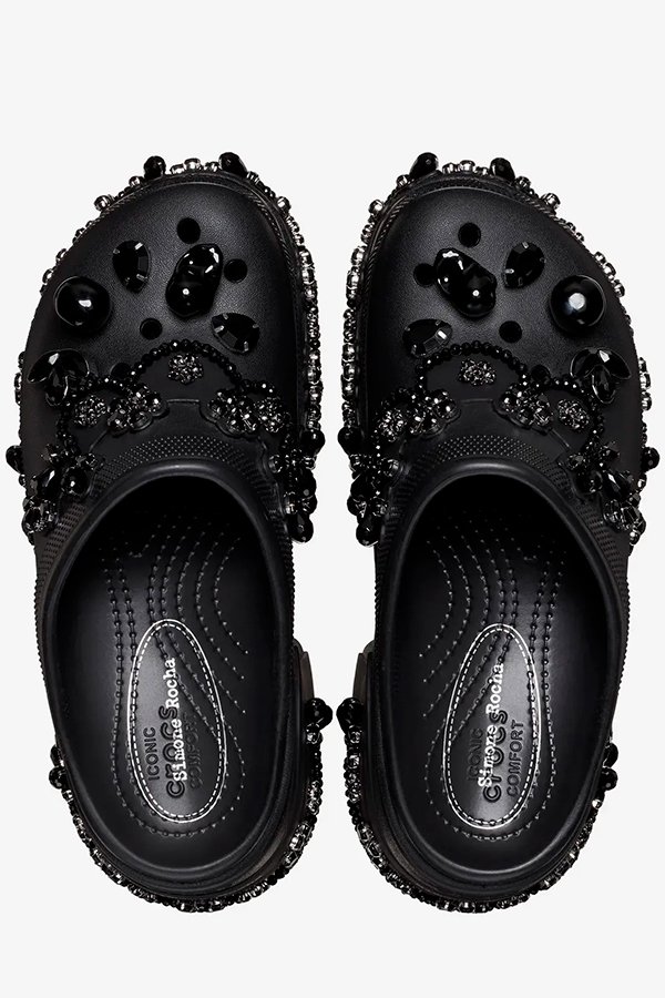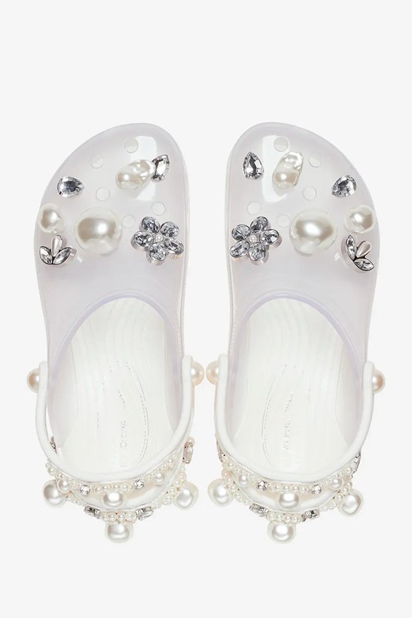 Simone Rocha, fechou parceria com a Crocs está prestes a desembarcar no Brasil. Dois modelos serão vendidos com exclusividade através do app da Crocs a partir do dia 29 de maio. São eles: o ‘Crocs Translucent Clog’, na cor giz, e o ‘Crocs Siren’, nas cores preto e giz, ambos customizados com pérolas e cristais, remetendo aos bordados de Simone Rocha. Os modelos terão preços a partir de R$1.000.