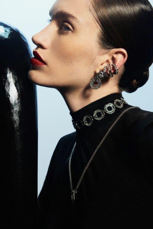 Alinhada à tendência Bold Minimal, a coleção-cápsula apresenta designs futuristas, com um twist poderoso e surpreendente. As zircônias e strass Black Diamond dão destaque aos ângulos e às linhas retas, refletindo um brilho singular aos acessórios. Além do característico banho de Ouro Vintage, os itens seguem a tendência do Prata Galáctico por meio do banho de Prata Boho, que garante um tom vibrante e único. .jpg)