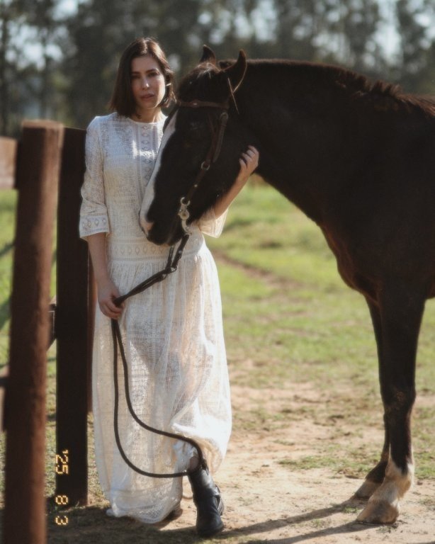 Ícones da estética campestre, as botas de cano alto seguem como protagonistas, mas agora aparecem combinadas a diferentes propostas, do casual ao mais sofisticado. Cintos de couro, luvas e até detalhes metálicos inspirados em arreios complementam o look, trazendo autenticidade e reforçando a produção com um toque contemporâneo.