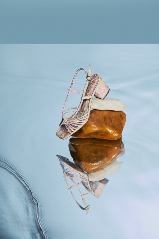 A linha apresenta modelos de sapatos e bolsas, com destaque para peças com saltos bloco, as bucket bags e as rasteirinhas com ornamentos metalizados - inspirados em formas marinhas - e amarrações. Na coleção, o couro e a ráfia dividem espaço com lenços de cetim estampados com a padronagem exclusiva da linha, que aparecem como detalhes de forma elegante e versátil.