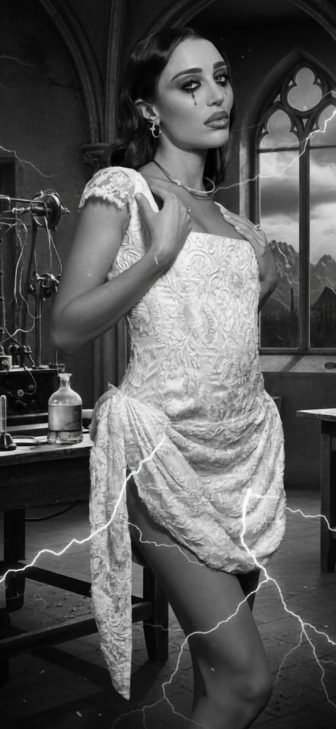 O resultado é um look que une feminilidade e força, uma leitura moderna e fashionista da icônica personagem do universo de Frankenstein.
