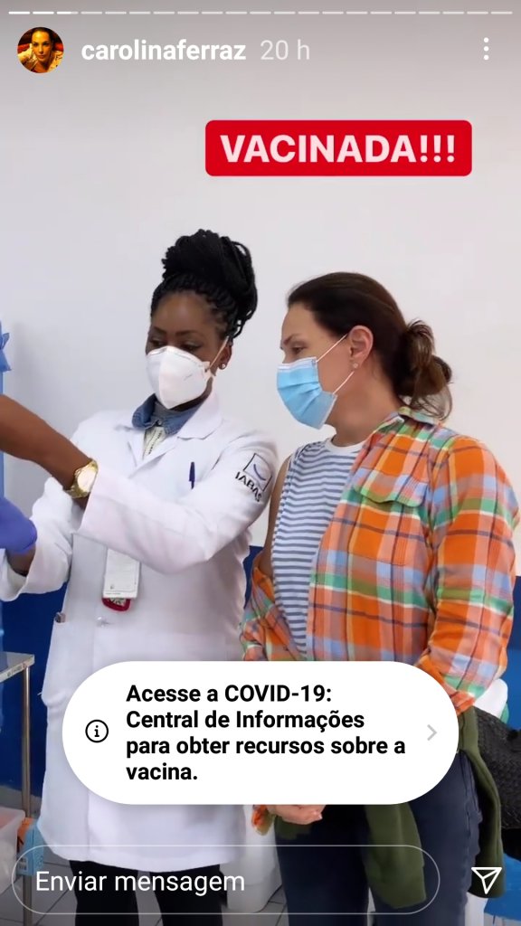 Eu sou ryca! Carolina Ferraz recria meme ao ser vacinada contra Covid-19