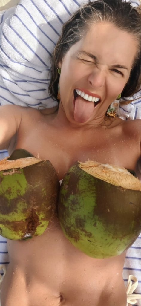 Famosa usa coco para cobrir os seios em praia da Bahia!
