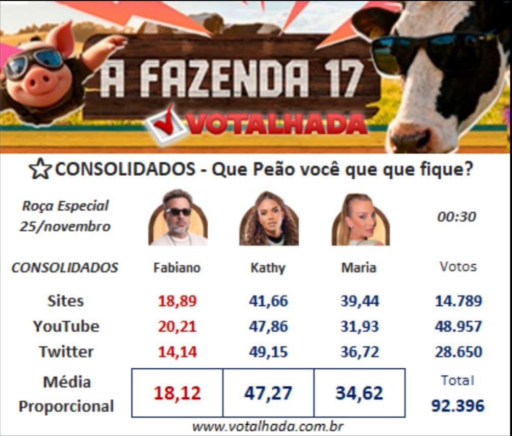 Pega fogo cabaré! Fabiano, Kathy e Maria estão na roça surpresa e enquetes indicam que Fabiano será o próximo eliminado do programa.