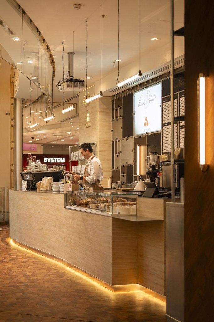A cada nova temporada de verão no Hemisfério Norte a Galeries Lafayette Paris Haussmann anuncia novidades. Desta vez, o segundo andar de seu edifício no Boulevard Haussmann passou a acolher o coffee shop Coutume em uma colaboração com o chef confeiteiro François Daubinet. Batizado de François Daubinet chez Coutume, o espaço marca o encontro entre dois universos sustentados pelas mesmas exigências: o domínio técnico, a qualidade dos produtos e o respeito pela origem das matérias-primas. Juntos, o empresário Tom Clark, fundador da casa de café, e Daubinet, figura emblemática da cena internacional da confeitaria, pensaram este lugar como um verdadeiro laboratório dedicado à degustação de cafés e de doces exclusivos dentro da loja de departamentos, proporcionando ao clientes uma visão privilegiada da famosa cúpula em estilo art nouveau deste icônico endereço parisiense.