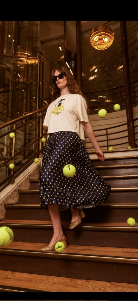 Além disso, a Galeries Lafayette lançará uma nova coleção própria dedicada ao Aberto da França com peças masculinas e femininas. Esta quarta edição temática que homenageia o torneio equilibra o estilo esportivo com um toque sofisticado, trazendo poás e listras em uma paleta de cores focada no azul-marinho e no creme. Essa coleção exclusiva de roupas e acessórios estará disponível nos pop-ups Roland-Garros das lojas do Boulevard Haussmann, Champs-Élysées e Beaugrenelle, bem como na loja principal localizada no Stade Roland-Garros durante todo o torneio.