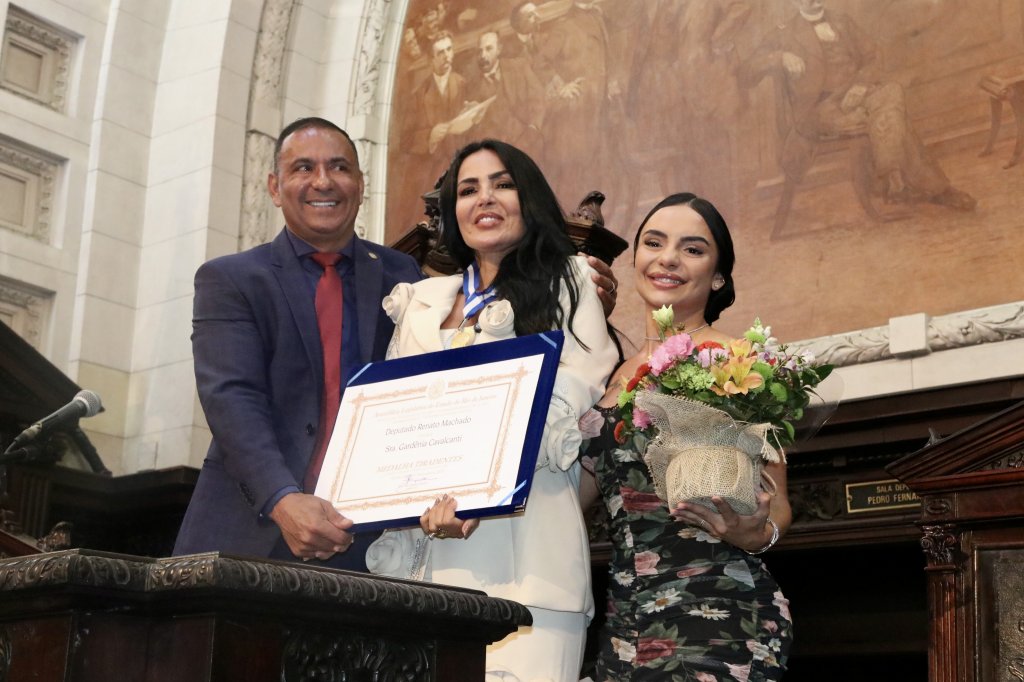 Na última segunda-feira, a apresentadora e jornalista do Jornal O Dia, Gardenia Cavalcanti recebeu a Medalha Tiradentes (a mais alta honraria concedida pela Alerj – Assembleia Legislativa do Estado do Rio de Janeiro). A entrega foi feita pelo Deputado Renato Machado.