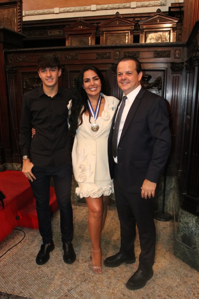 Acompanhada de seu esposo Marcos Rezende e do filho Miguel, ela ficou muito emocionada durante a sessão. Dentre os presentes estiveram o Padre Omar, o Cantor Márcio Gomes, Renata Fraga, dentre outros... A cerimônia ocorreu no belíssimo Palacio Tiradentes (Rio de Janeiro). Deputado Renato Machado e sua esposa, Evellyn