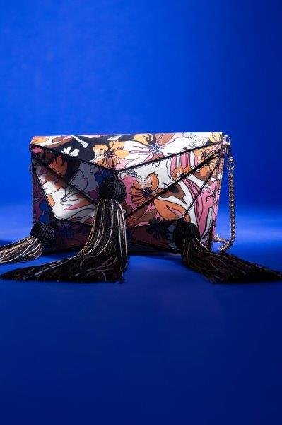 Por fim, de forma inédita, uma versão toda em print floral exclusivo, também com aplicação de três barbicachos em um mix de seda preta, dourada e prata. A bolsa nasce a partir de duas variações da estampa, uma nas cores preta e branca e outra em uma combinação de laranja, rosa, preto e branco. “Sempre apostamos em shapes e construções, mas para este lançamento, pela primeira vez, selecionamos um couro estampado, que traz uma estamparia exclusiva criada pelo própio Herchcovitch.”, finaliza Luiza.