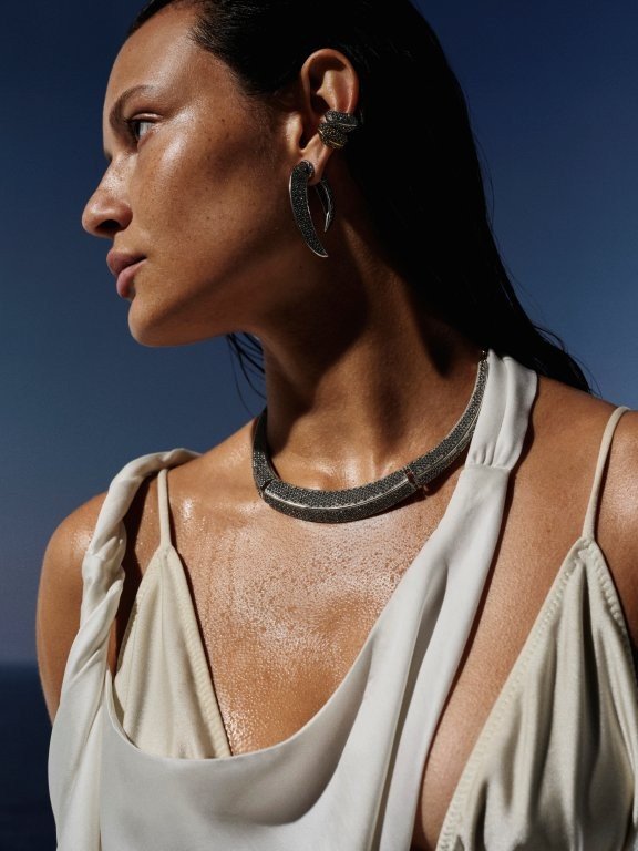 Entre as tendências exploradas neste lançamento estão os acessórios maximalistas, que resgatam a estética da era disco dos anos 70. Colares esculturais, em versões maxi chokers ou longos sautoirs, elevam os looks, enquanto brincos de impacto reforçam o poder dos acessórios statement. Já os braceletes volumosos destacam os pulsos como ponto de estilo.