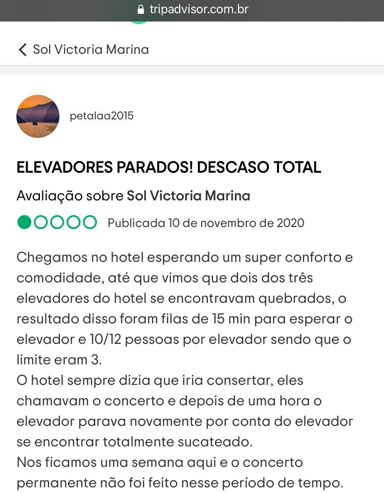 As reclamações do condômino são reafirmadas por hóspedes. Em sites e aplicativos de viagem e hospedagem é possível ver, por exemplo, inúmeros comentários negativos sobre o hotel. No site Tripadvisor, uma hóspede deixou o seguinte comentário em novembro de 2020: