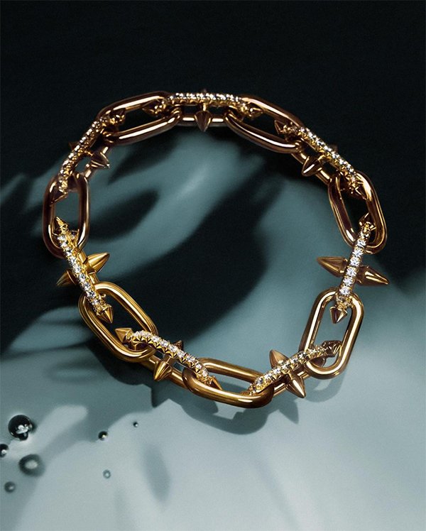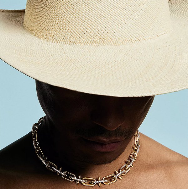 A Tiffany & Co. lanca um coleção em parceria com Pharrell Williams. Inspirada no tridente de Poseidon, a linha traz detalhes de espinhos que lembram lanças, como as pontas do tridente. São colares, pulseiras, anéis e brincos em ouro amarelo de 18k, titânio e diamantes.