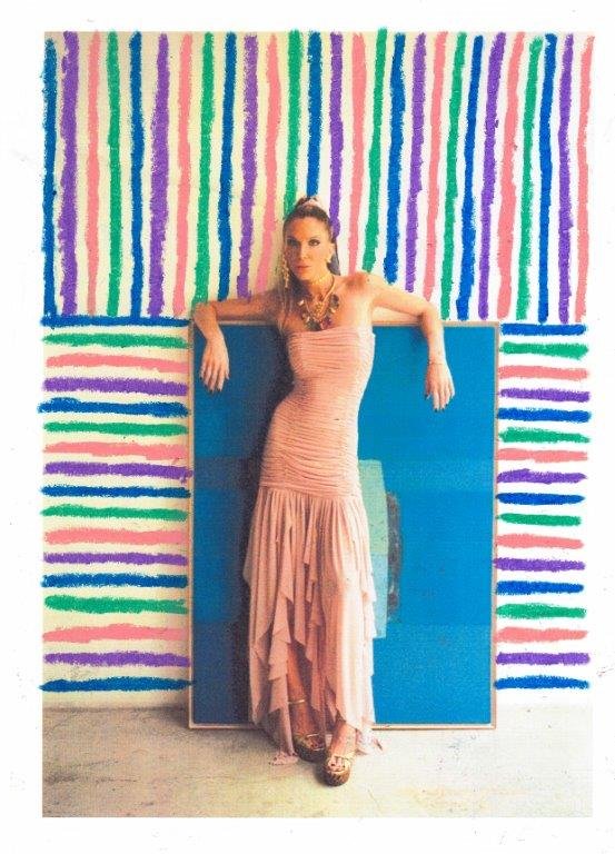 A linha conta com três prints exclusivos, feitos à mão pela própria Renata. O primeiro é formado por um desenho assimétrico inspirado nos anos 60 e 70, que combina as cores café, azul turquesa e preto, e dá vida a um modelo de vestido longo de tule com mangas longas; blusas longas com pedrarias; uma calça e saia de tricot com lurex.