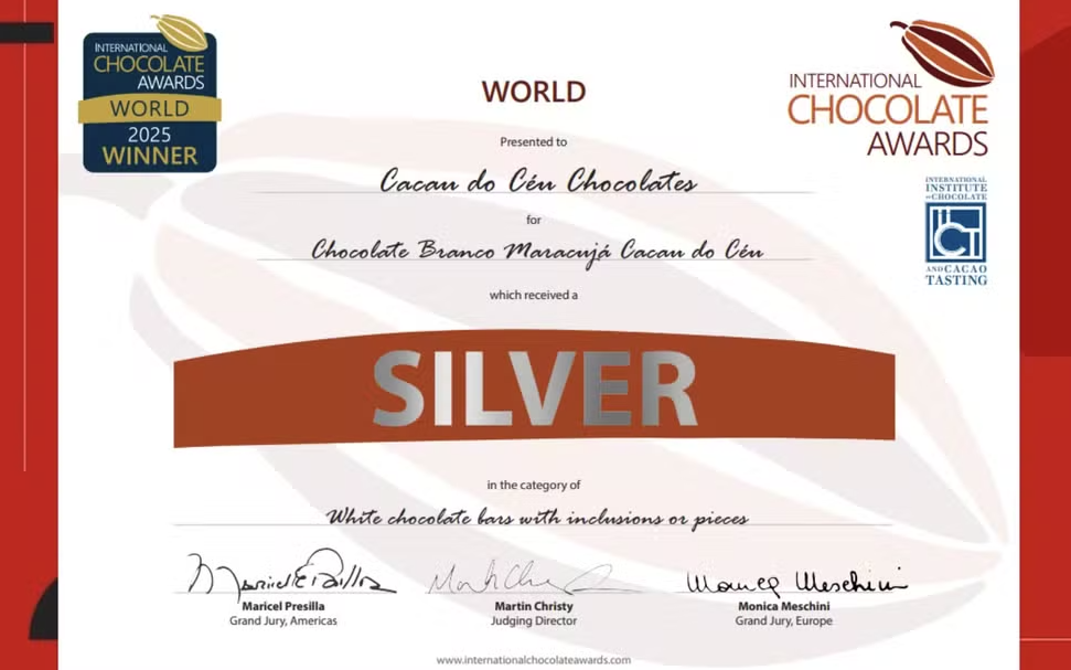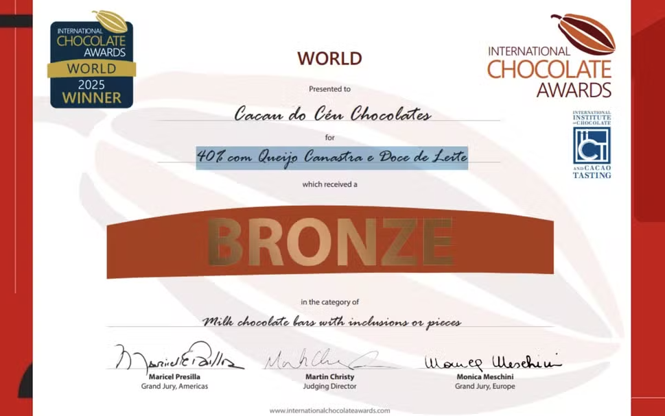 A marca de chocolate baiana Cacau do Céu foi listada entre as melhores do mundo no International Chocolate Awards, considerado o “Oscar do Chocolate”. A lista, divulgada na terça-feira (11), conta com apenas outras duas empresas brasileiras.