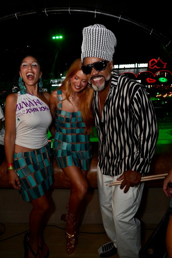 A cantora Marina Sena, estrela da mais recente campanha da label — fotografada em Trancoso em janeiro deste ano — esteve no Nosso Camarote ao lado de Jasmin. Já a atriz Marina Ruy Barbosa acompanhou a noite no Camarote Alma Rio, também na companhia da fundadora.