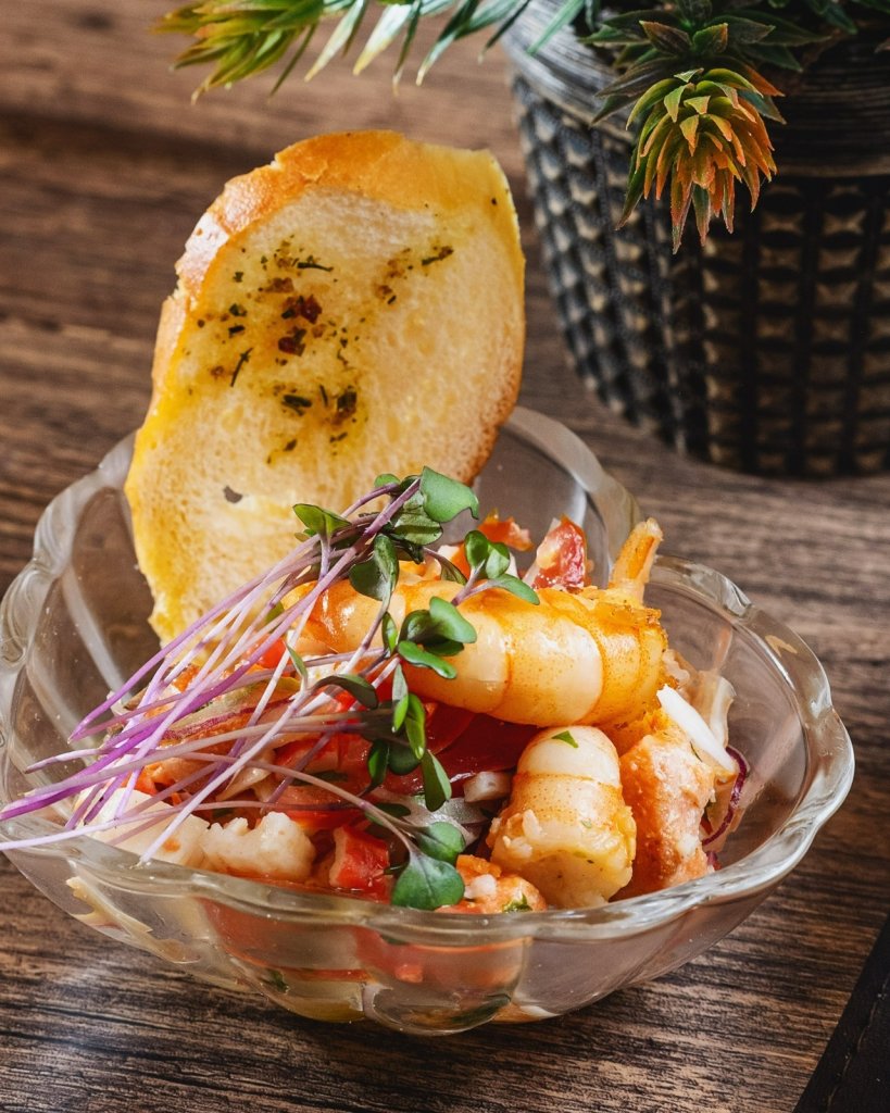 Entre as opções de entrada, destacam-se o Abacaxi ao Molho de Coquetel de Camarão, o Filé ao Molho de Gorgonzola com Torrada Artesanal e a Mini Salada Influencer.