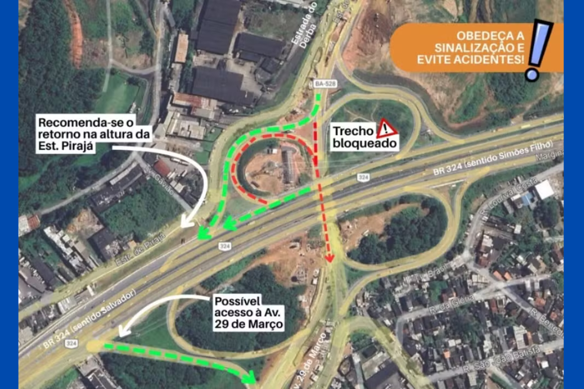 Durante as obras, os motoristas que passarão pela região poderão utilizar o retorno na altura da Estação Campinas ou da Estação Pirajá. Além da possibilidade de acessar a Avenida 29 de Março por rota alternativa indicada na sinalização instalada na região.