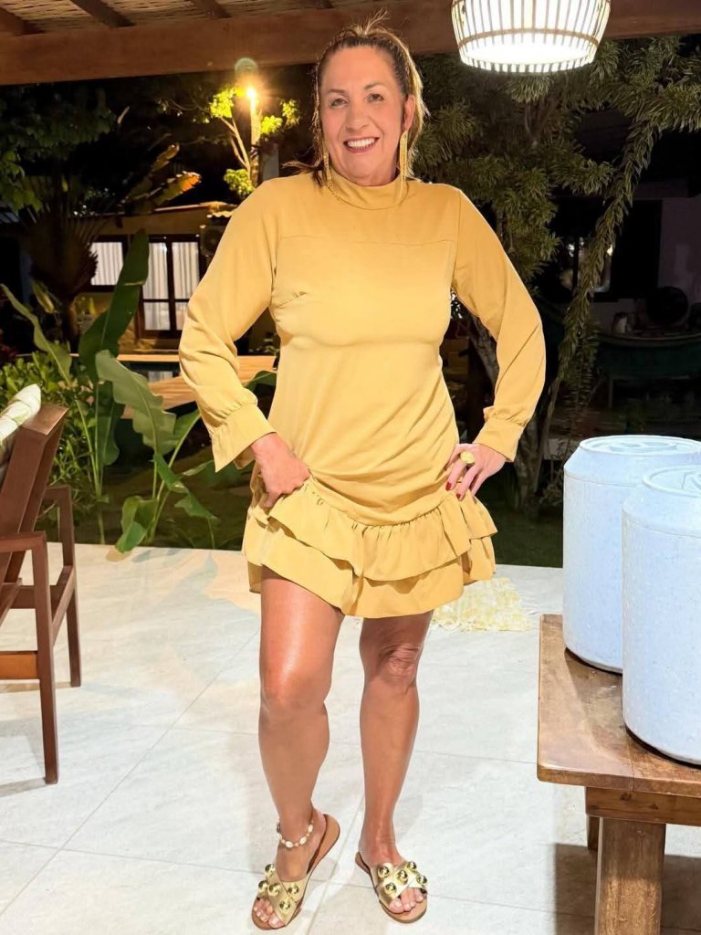 Após término do relacionamento com Danilo Sanfoneiro, Margareth Serrão passou a virada de ano com seu filho, Willian, a nora e o netinho Gabriel, além de outros parentes e amigos em Arraial d'Ajuda, na Bahia. A mãe de Virgínia Fonseca optou pela cor amarela para sua produção de Réveillon.