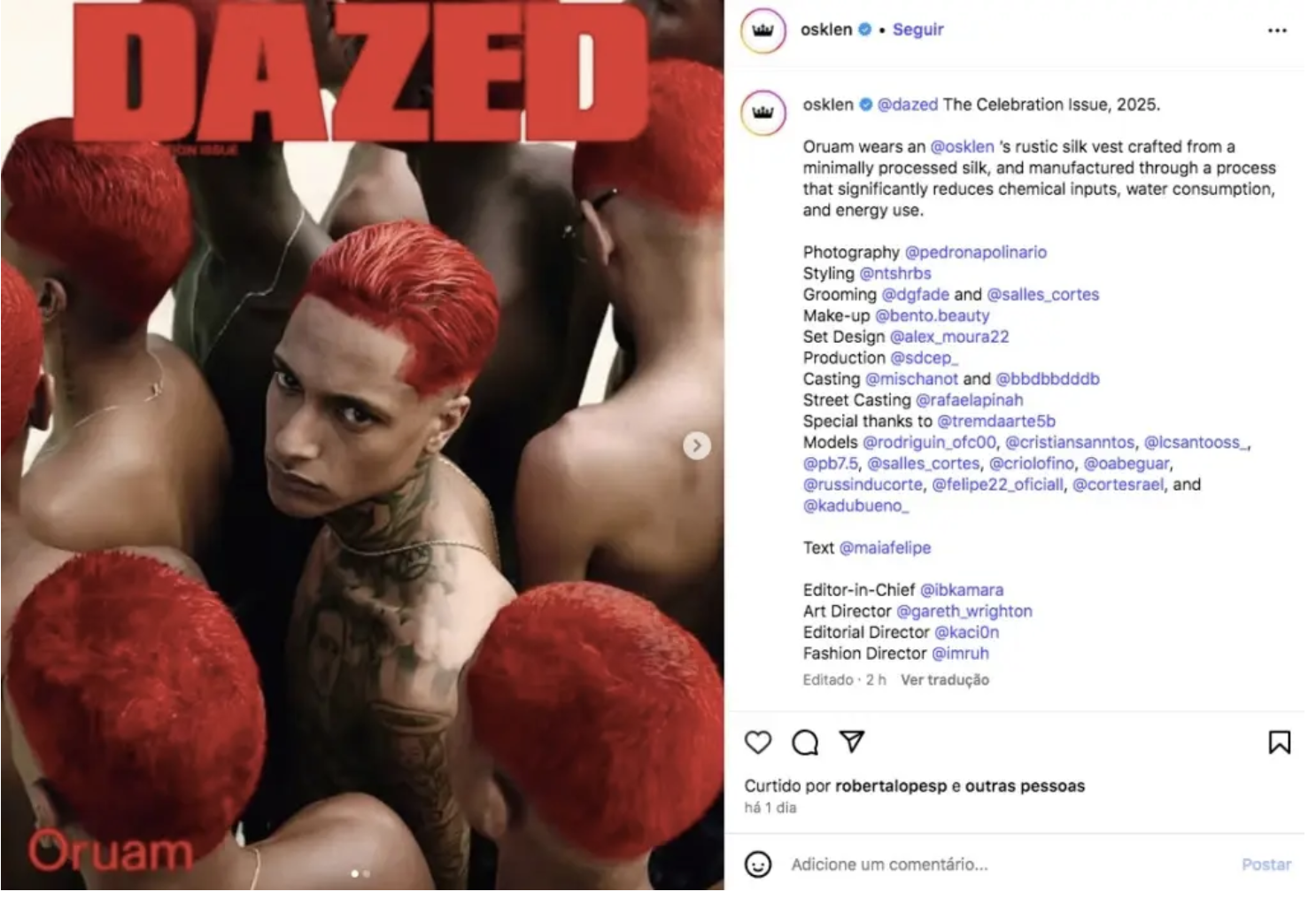 Veja a postagem da capa Dazed no Instagram da Osklen e comentários em outras publicações: