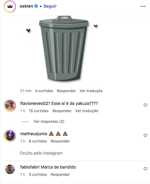 A marca brasileira Osklen enfrentou críticas nas redes sociais após vestir o rapper Oruam em um ensaio para a revista britânica Dazed. No post que apresenta o cantor, a opção para comentários está desativada, o que levou diversos usuários do Instagram a expressarem suas opiniões em outras publicações do perfil.