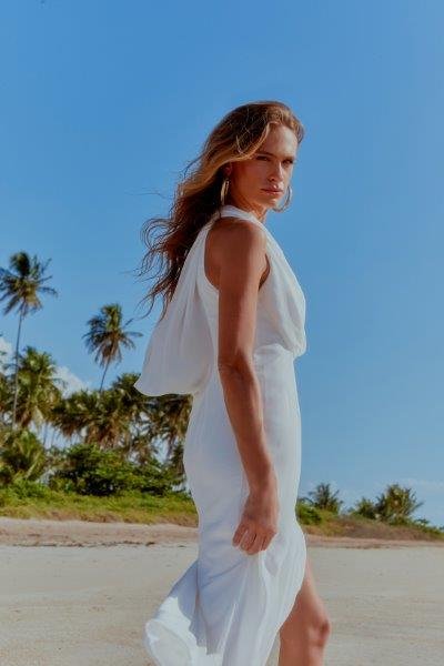 A cartela de cores da festiva coleção de Alto Verão 24 é formada principalmente por vestidos em off white, cor que reflete a elegância e leveza da estação. Os cristais e os metalizados, em paetês prata e dourado, também estão presentes através de bordados em padronagens diferenciadas, que agregam atitude e glamour para os modelos.