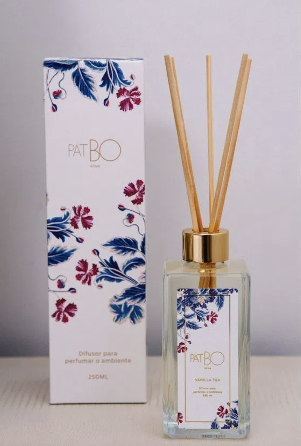 A PatBO de Patricia Bonaldi lança sua primeira coleção de perfumaria para ambiente. Embalada com a estampa exclusiva da Gilly Flower, a nova coleção é composta por sabonete líquido, difusor com varetas para perfumar o ambiente com aroma Vanilla Tea, o mesmo encontrado nas lojas da marca, e vela aromática.