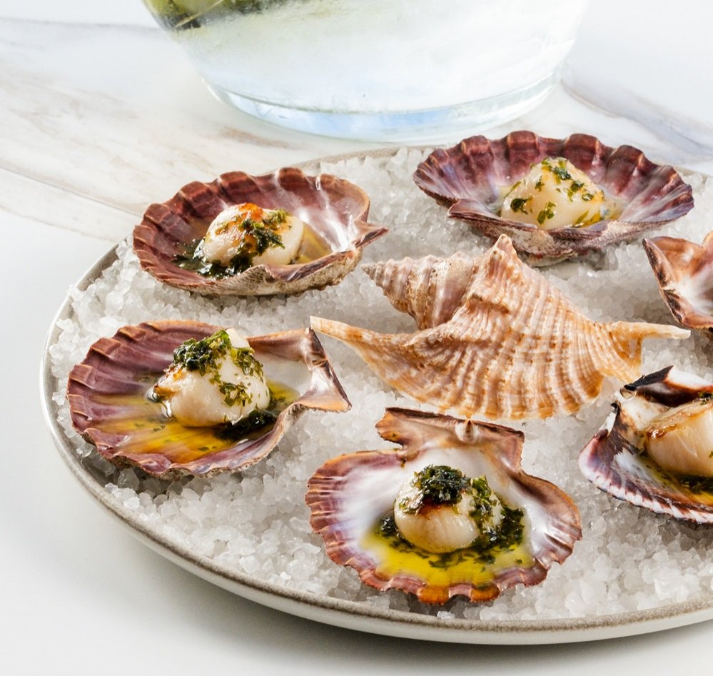 Entre as entradas, as Vieiras à Francesa chegam grelhadas na concha, com manteiga aromatizada, alho, salsa e toque de limão, enquanto o Burger de Siri Mole aposta em uma combinação inusitada, com molho tártaro, emulsão de avocado e ovas de massago. O Frito Misto reúne uma seleção de frutos do mar empanados, como siri mole, polvo, camarão, lula e mexilhões, e a Coxinha de Siri aparece como releitura sofisticada do clássico, com massa leve de batata e recheio bem temperado.