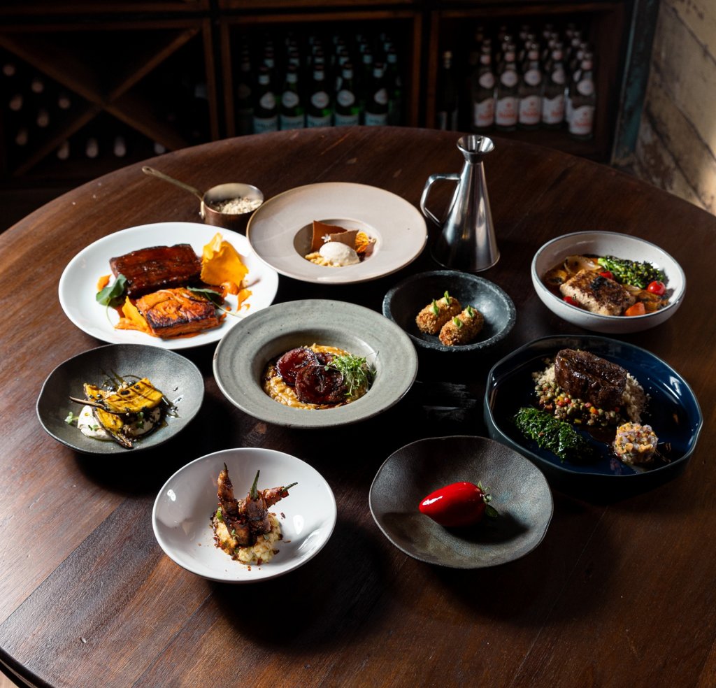 As entradas transitam entre sabores como o Quiabo & Bacon (quiabo envolto em bacon crocante e barbecue da casa), o Bolinho de Batata com alho-poró e linguiça artesanal, e a Banana Tostada com coalhada seca, ervas frescas, melaço e castanhas brasileiras.