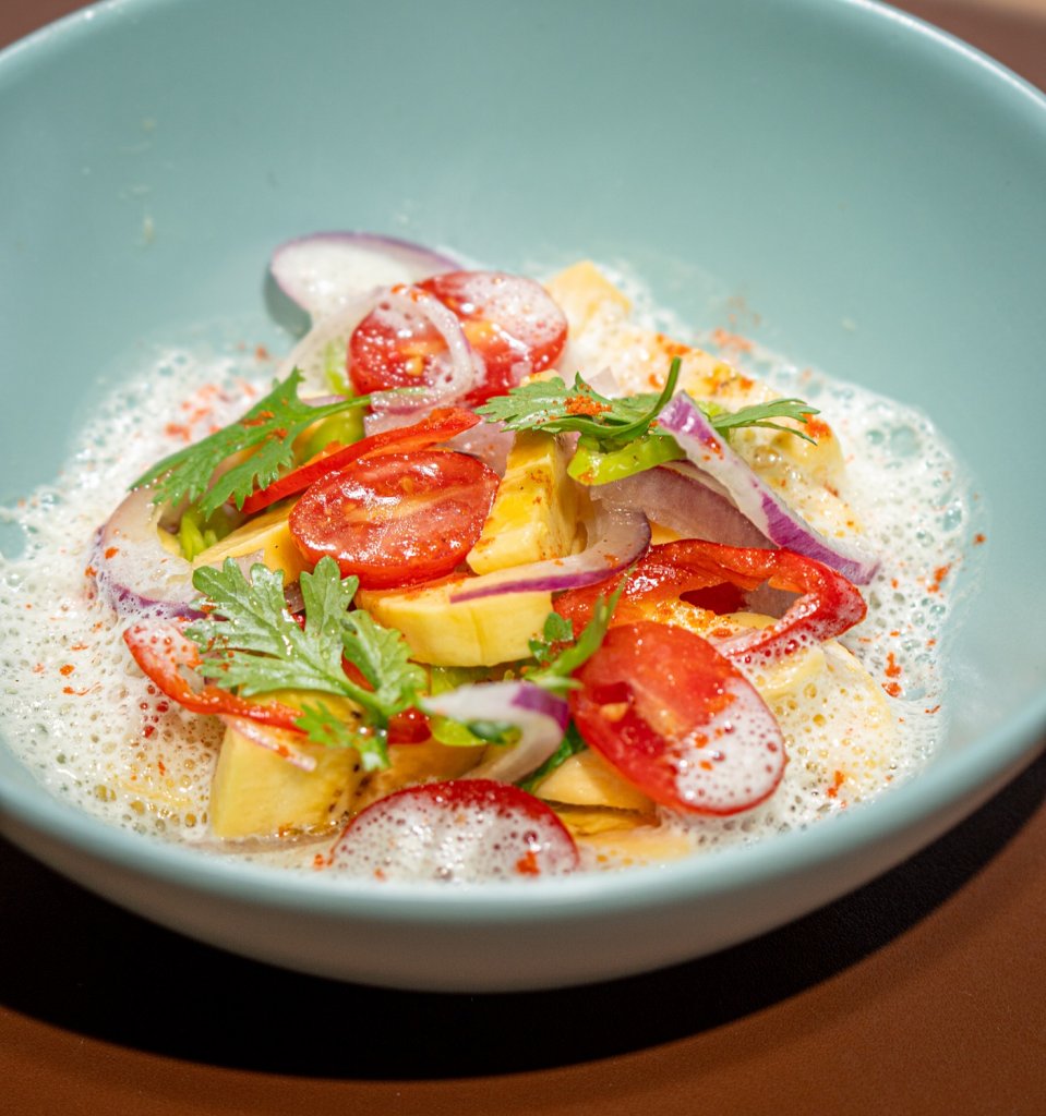 Entre as Entradas, os destaques são o Crostini de Pernil, servido com aioli cremoso, barbecue artesanal e picles de pimenta doce, e o refrescante Ceviche de Banana da Terra, marinado com cebola roxa, pimenta dedo-de-moça e espuma de pimenta doce.
