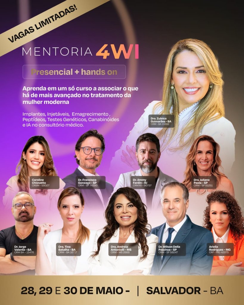 Com vagas limitadas, o encontro também oferece acompanhamento pós-treinamento, materiais exclusivos e acesso a uma comunidade de profissionais para troca de experiências e networking qualificado - reforçando o compromisso com a excelência e atualização constante na medicina contemporânea. Mais detalhes no Instagram @mentoria4wi ou pelo whatsapp 71 98163‑8848.