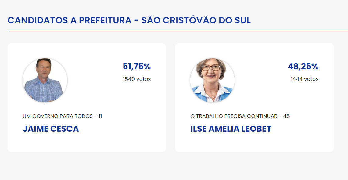 São Cristóvão do Sul (SC) é o primeiro município a ter 100% das urnas apuradas