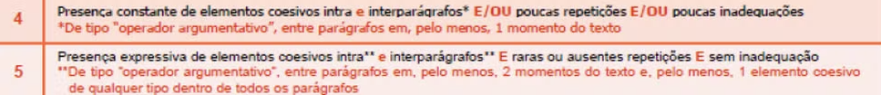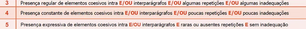 1- Regra mais aberta e menos detalhada na competência 4, sobre o uso de elementos coesivos, como “dessa forma” e “consequentemente”;