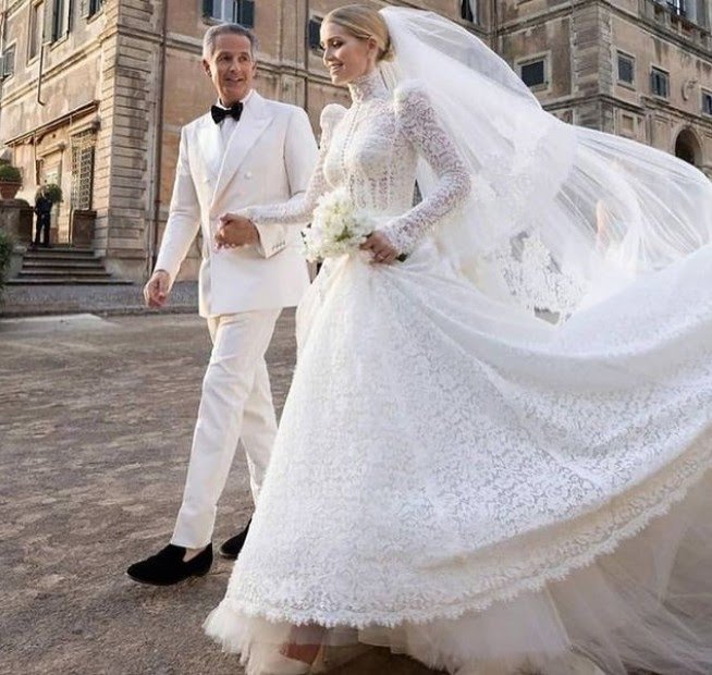 Usando um vestido Dolce&Gabanna, sobrinha da princesa Diana se casa com milionário sul-africano na Itália