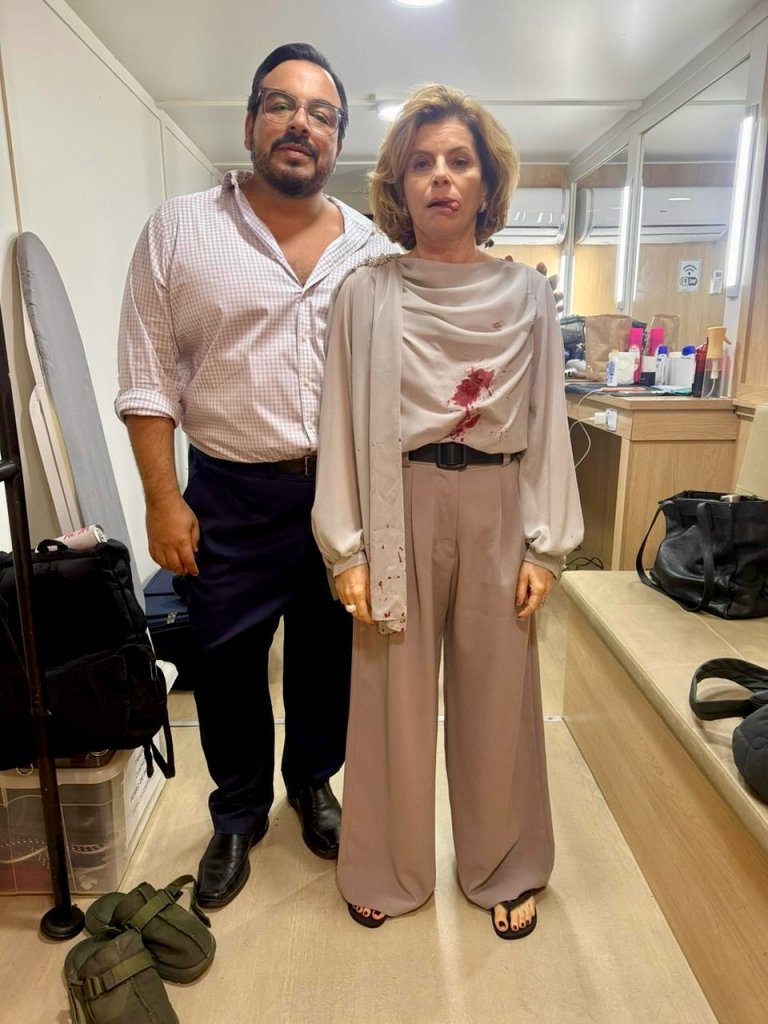 A maravilhosa Débora Bloch se despediu oficialmente de ‘Vale Tudo‘! Na noite de sexta-feira, 17, dia em que foi ao ar o último capítulo do remake, a atriz compartilhou com o público os bastidores da cena em que Odete Roitman, sua personagem na trama, ‘ressuscita’ após ser atingida por tiro disparado por Marco Aurélio (Alexandre Nero). Em suas redes sociais, Bloch dividiu com os fãs alguns registros da última cena de Odete Roitman no remake. Nas imagens, a famosa aparece ao lado de Luis Lobianco e dos demais atores que interpretaram os médicos e policiais na trama. “Quem tem amigo tem tudo“, brincou ela na legenda.