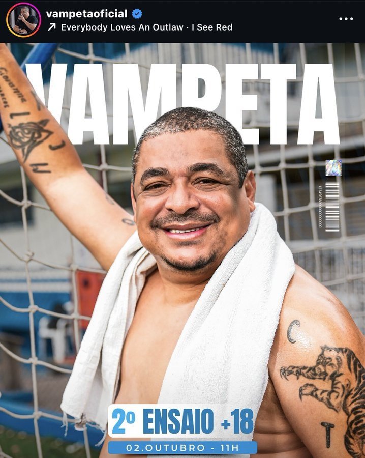 O ex-jogador de futebol Vampeta surpreendeu os seguidores ao divulgar nesta terça-feira (30), que participou de um novo ensaio nu. O baiano publicou nas redes sociais uma foto sem camisa e com a legenda: "Meu Segundo ensaio +18".