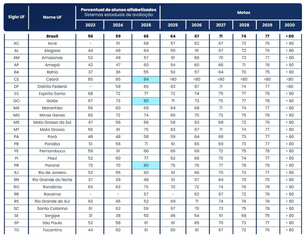 Jerônimo também levantou que no Brasil esse histórico é muito baixo. No entanto, em 2025, o percentual brasileiro também ultrapassou a meta estabelecida de 64% para 66%, ficando 7% acima da média de 2024. O governador aproveitou para reforçar que a responsabilidade da alfabetização das crianças é do município.