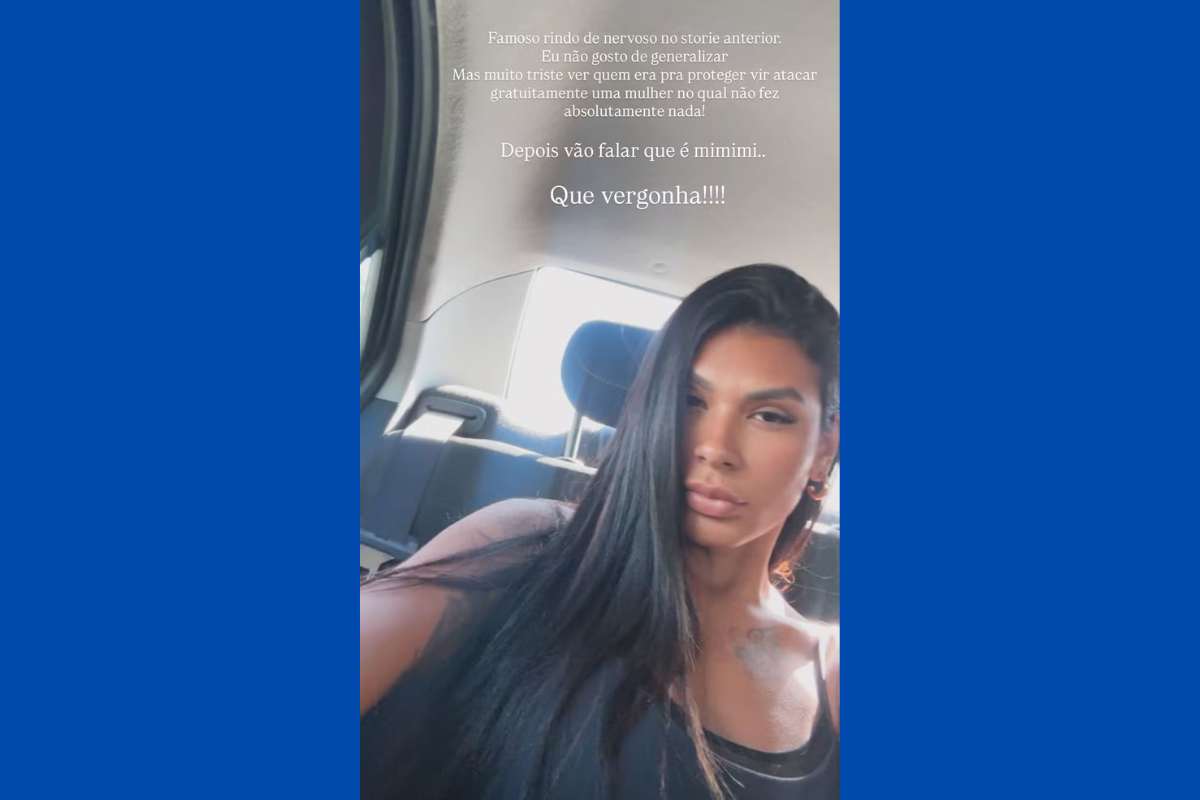 Ainda nas redes sociais, Pocah publicou uma foto e aproveitou para desabafar sobre a situação: "Famoso rindo de nervoso no storie anterior. Eu não gosto de generalizar. Mas muito triste ver quem era pra proteger vir atacar gratuitamente uma mulher que não fez absolutamente nada! Depois vão falar que é mimimi… Que vergonha!!!”, publicou.