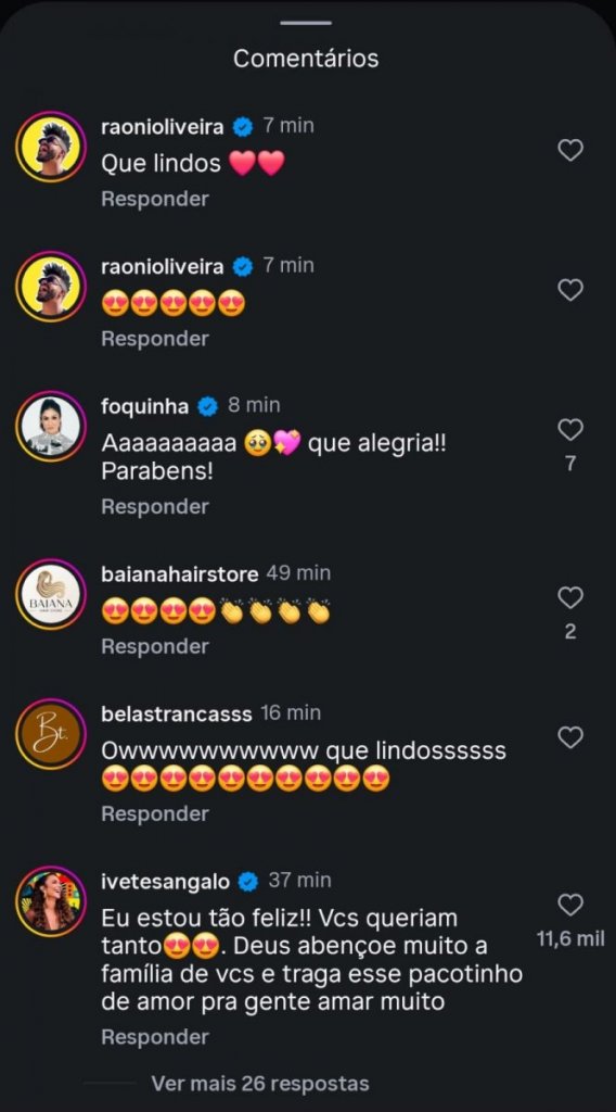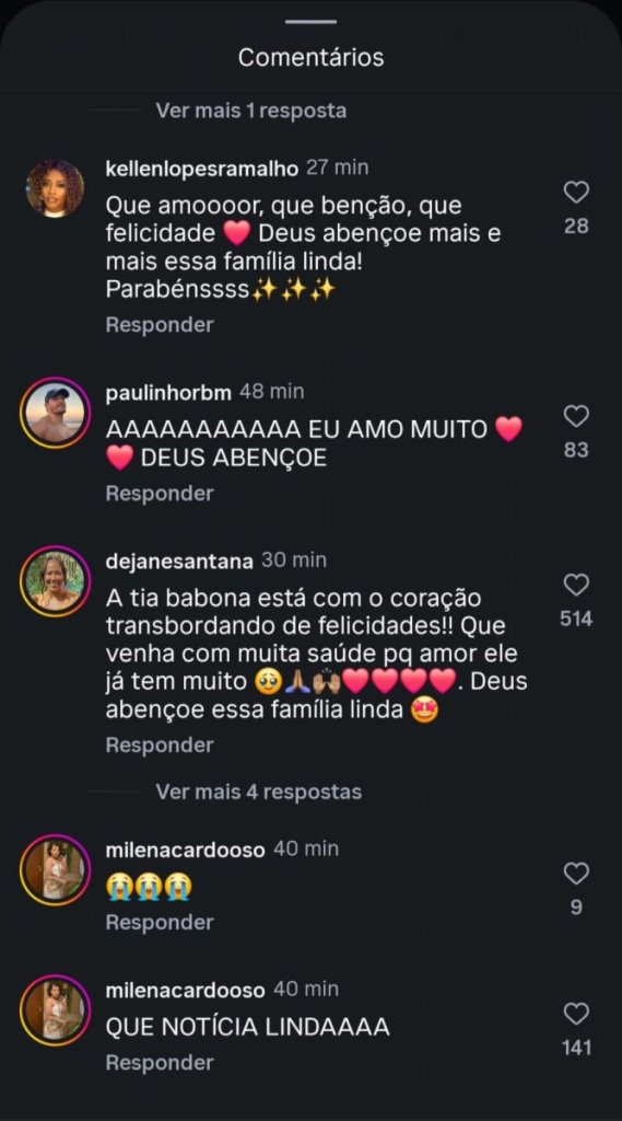Amigos, fãs e famosos felicitaram a família nos comentários.